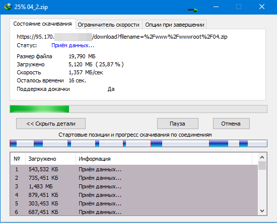 Данные сервера: